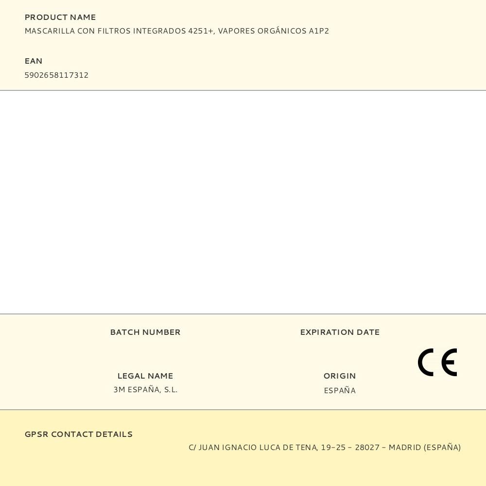MASCARILLA CON FILTROS INTEGRADOS 4251+, VAPORES ORGÁNICOS A1P2