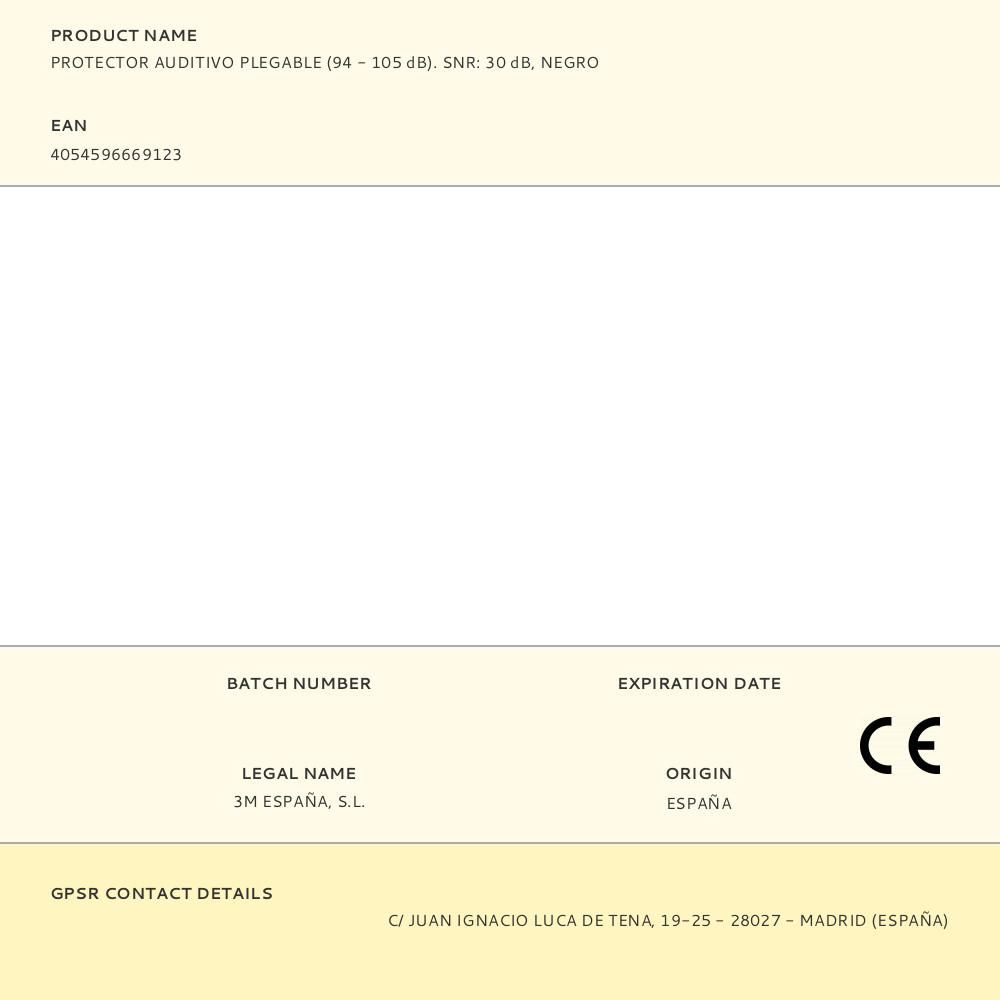 PROTECTOR AUDITIVO PLEGABLE (94 - 105 dB). SNR: 30 dB, NEGRO