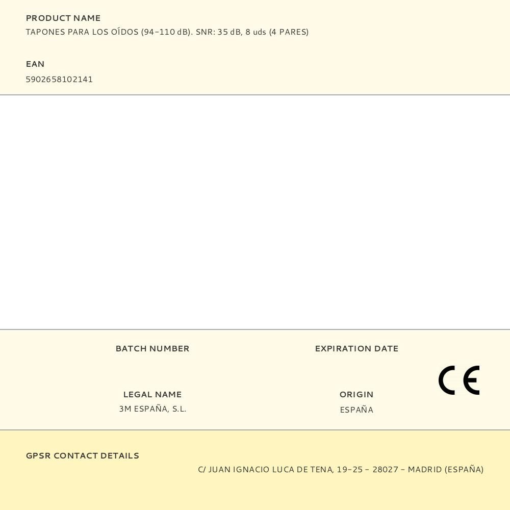 TAPONES PARA LOS OÍDOS (94-110 dB). SNR: 35 dB, 8 uds (4 PARES)