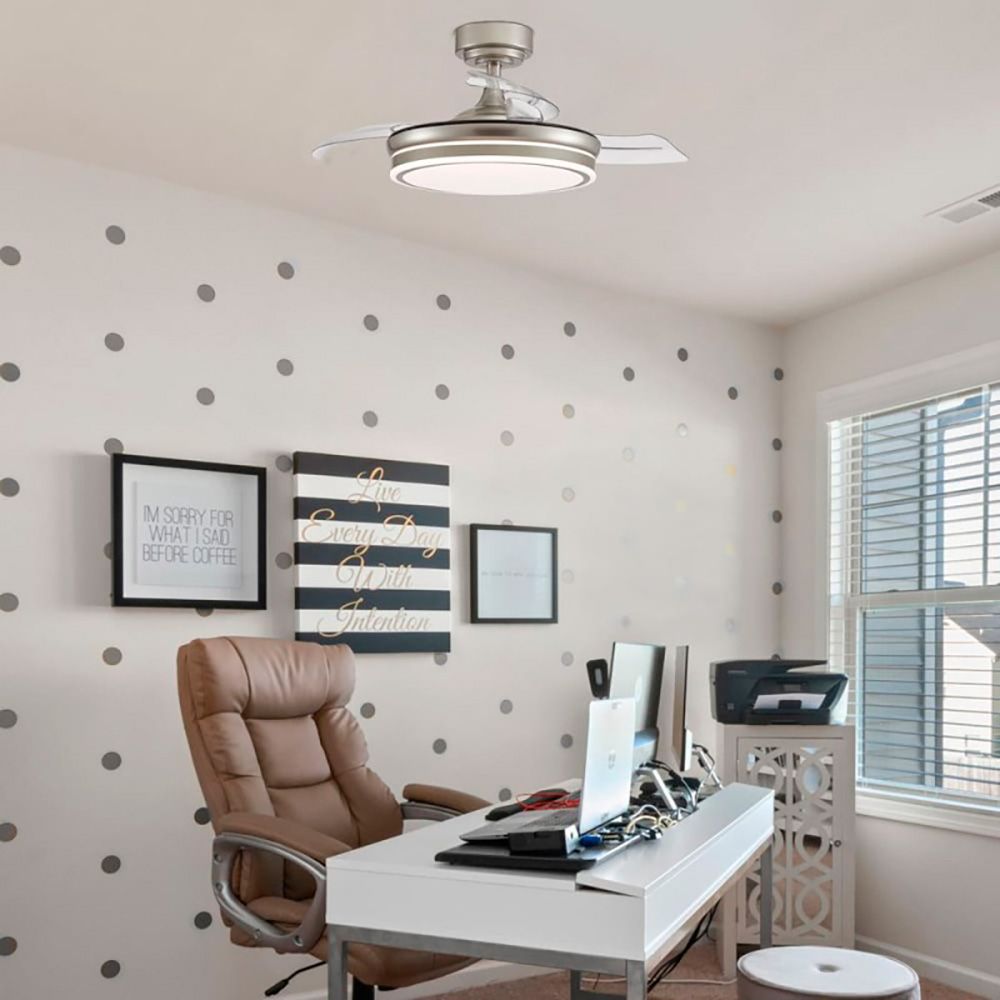 VENTILADOR DE TECHO LED 3CCT ASPAS RETRÁCTILES MOSS MINI 46 W 5520 lm NÍQUEL, ASPAS Ø92 cm, PLAFÓN Ø39 cm, ALTURA 32 - 42 cm