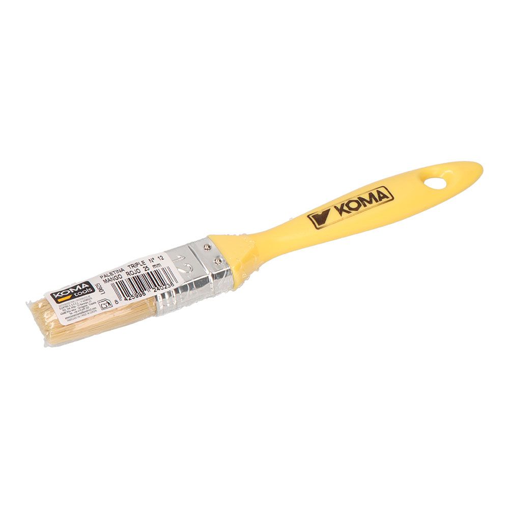 PALETINA TRIPLE Nº 12, MANGO DE PLÁSTICO DE COLOR AMARILLO, APTA PARA TODO TIPO DE PINTURAS, CON UNA MÁXIMA CUBRICIÓN, DIMENSIONES: 25 x 207 mm, GROSOR DE LAS CERDAS 13 mm