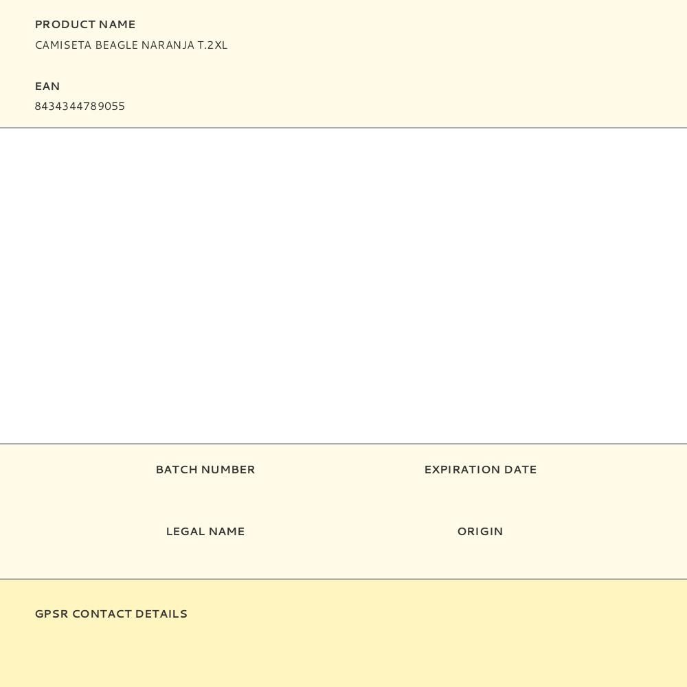 CAMISETA BEAGLE NARANJA T.2XL, 62 cm / 77 cm - DE MANGA CORTA DE CUELLO REDONDO DOBLE CON ELASTANO, CONFECCIONADA EN TEJIDO TUBULAR, CON CUBRECOSTURAS REFORZADO EN CUELLO - 100% ALGODÓN, PUNTO LISO, 155 g/m²