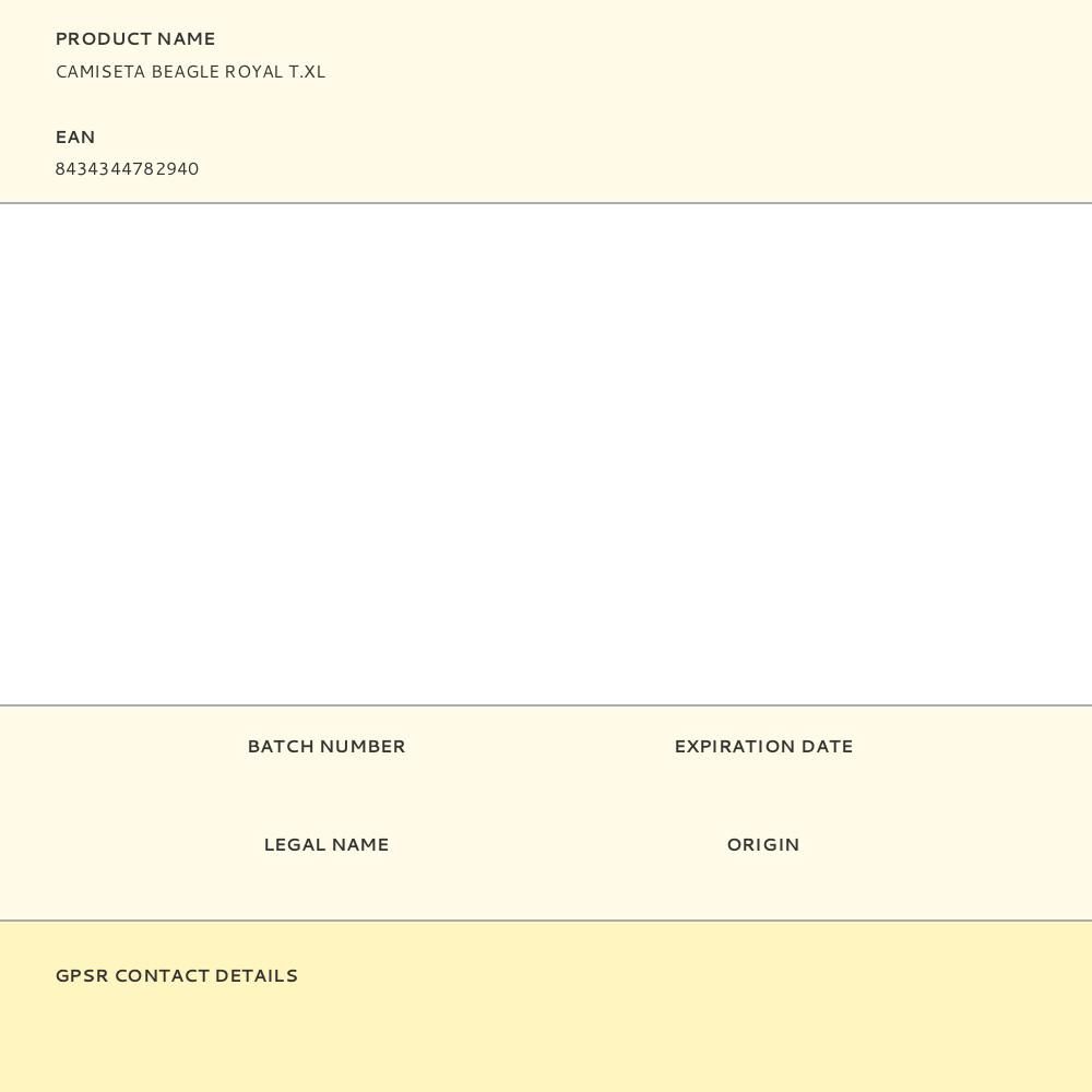 CAMISETA BEAGLE ROYAL T.XL, 58 cm / 75 cm - DE MANGA CORTA DE CUELLO REDONDO DOBLE CON ELASTANO, CONFECCIONADA EN TEJIDO TUBULAR, CON CUBRECOSTURAS REFORZADO EN CUELLO - 100% ALGODÓN, PUNTO LISO, 155 g/m²