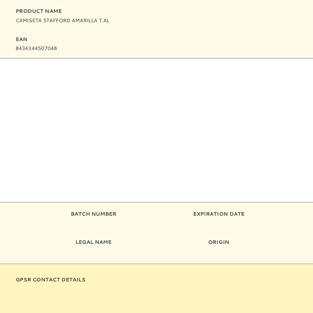 CAMISETA STAFFORD AMARILLA T.XL, 58 cm / 75 cm - CAMISETA TUBULAR DE MANGA CORTA, CUELLO REDONDO CON ELASTANO - 100% ALGODÓN, PUNTO LISO, 190 g/m²