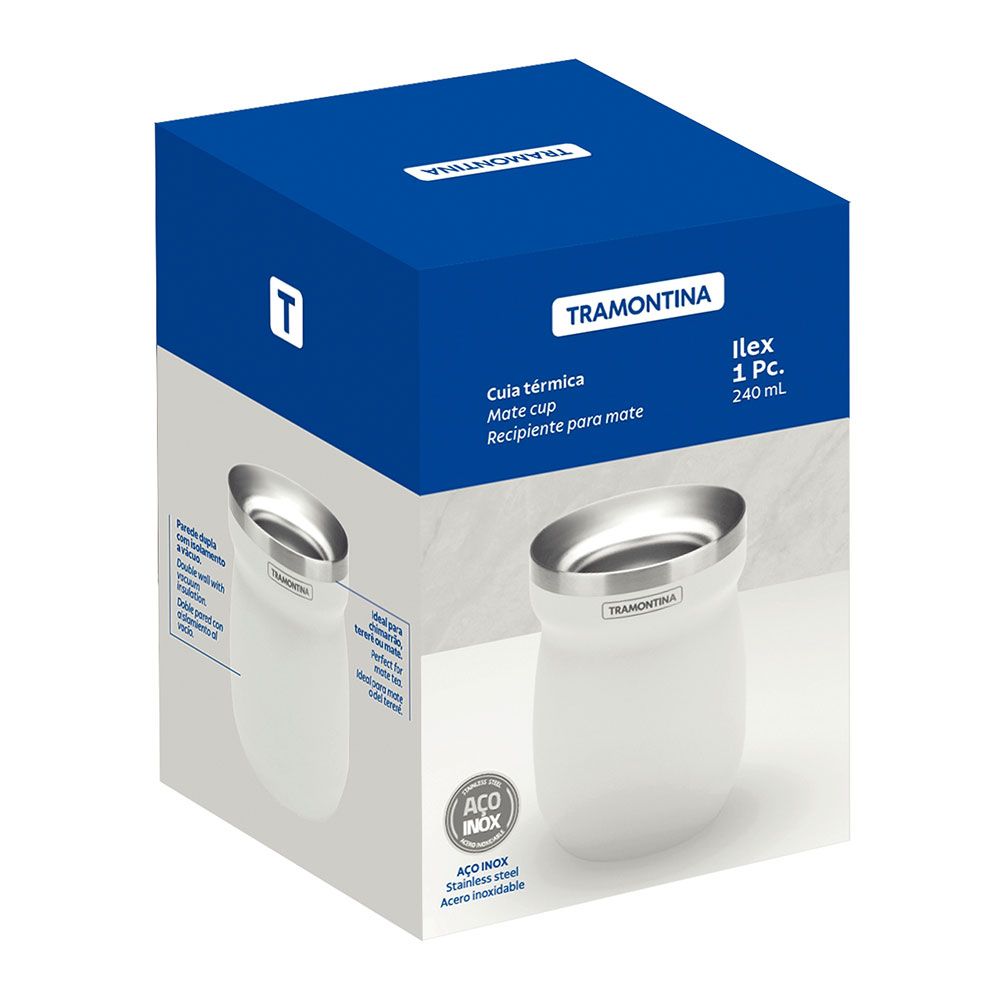 RECIPIENTE PARA MATE DE ACERO INOXIDABLE BLANCO 240 ml