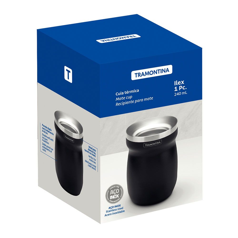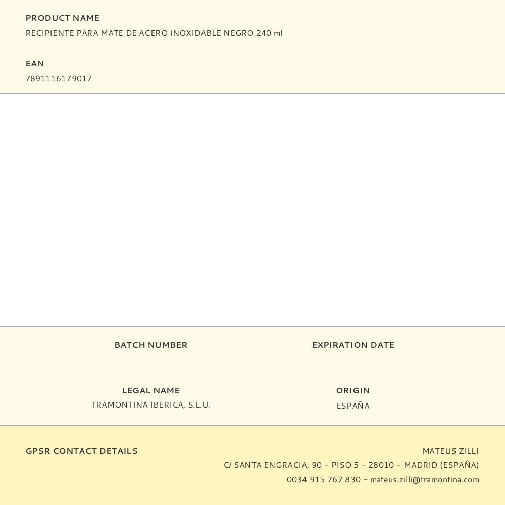RECIPIENTE PARA MATE DE ACERO INOXIDABLE NEGRO 240 ml