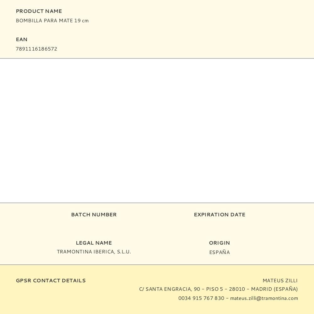 BOMBILLA PARA MATE EN ACERO INOXIDABLE 19 cm