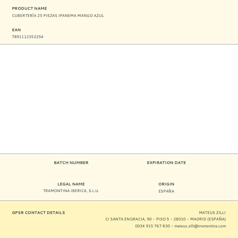CUBERTERÍA 25 PIEZAS IPANEMA MANGO AZUL