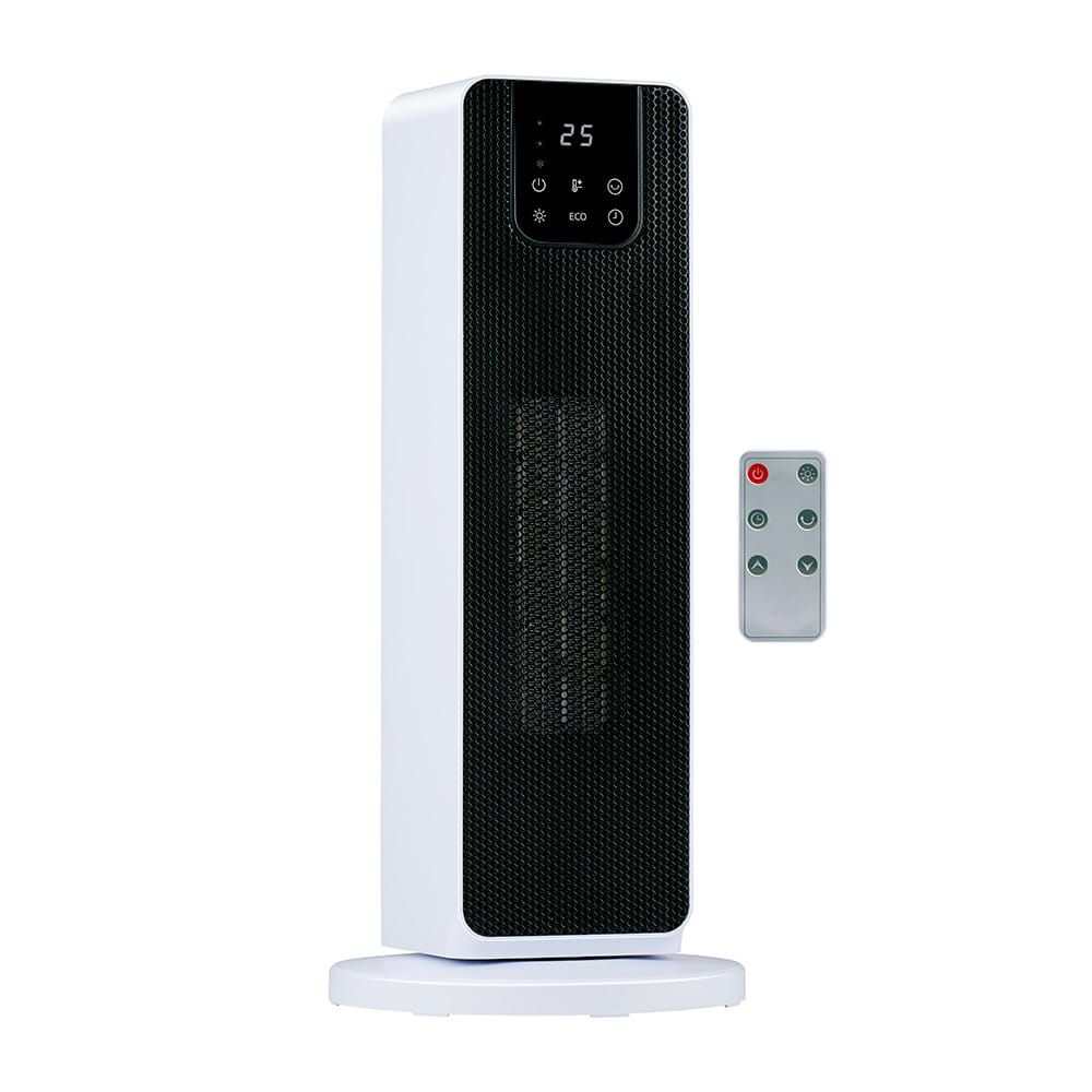 CALEFACTOR DE TORRE FUNCIÓN ECO - 2 POTENCIAS DE CALENTAMIENTO: 800/2000 W - 220-240~50 Hz - PARA USO INTERIOR - SUPERFICIE DE CALEFACCIÓN 15-20 m², ELEMENTOS CALEFACTORES CERÁMICOS PTC, PROTECCIÓN CONTRA SOBRECALENTAMIENTO - INTERRUPTOR DE SEGURIDAD ANTIVUELCO - FUNCIÓN DE OSCILACIÓN AUTOMÁTICA - FUNCIÓN DE TEMPORIZADOR - CABLE DE 1,5 m. INCLUYE MANDO A DISTANCIA (PILA CR2025 INCLUIDA). COLOR BLANCO. DIMENSIONES: 21 x 21 x 46 cm