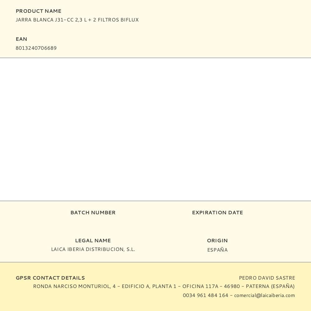 JARRA FILTRANTE BLANCA J31-CC 2,3 L + 2 FILTROS BIFLUX