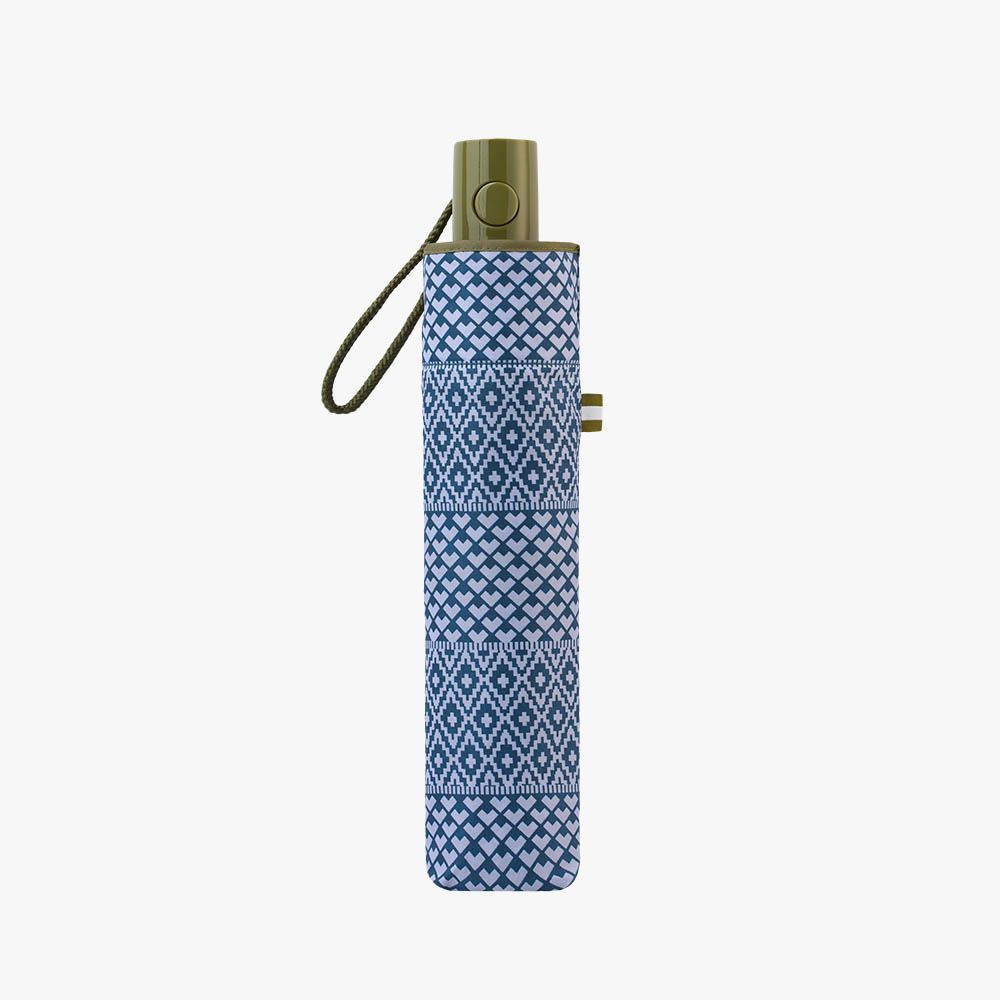 PARAGUAS PLEGABLE AUTOMÁTICO CON FUNDA, ESTAMPADO DE MOTIVOS GEOMÉTRICOS ÉTNICOS, COLORES SURTIDOS, TECNOLOGÍA WINDPROOF A PRUEBA DE VIENTO, CON PROTECCIÓN UV 50+, Ø1 m, DIMENSIONES PLEGADO 6 x 4 x 30 cm