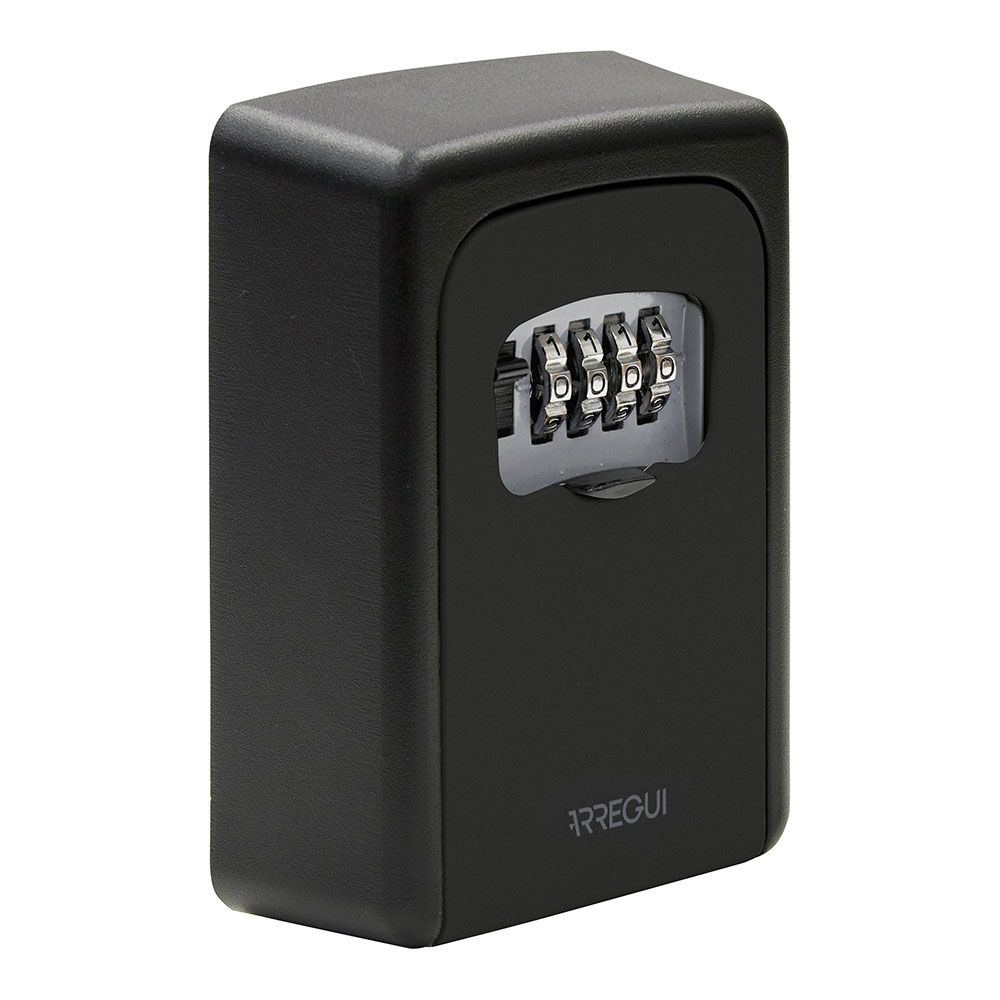 CAJA GUARDA LLAVES, MATERIAL: ALEACIÓN DE ALUMINIO - LIGERA Y RESISTENTE A GOLPES Y AGRESIONES, ADECUADA PARA GUARDAR DENTRO LLAVES, TARJETAS O PEQUEÑOS OBJETOS DE VALOR - APERTURA Y CIERRE DE COMBINACIÓN DE 4 DÍGITOS CONFIGURABLES - CON TAPA PROTECTORA QUE PROTEGE EL CIERRE DE COMBINACIÓN Y LO MANTIENE OCULTO - PARA EXTERIOR - CON ORIFICIOS EN LA PARTE TRASERA PARA MONTAJE EN PARED, TORNILLERÍA INCLUIDA - COLOR: NEGRO - MEDIDAS: INTERIOR 83 (útil 47) x 64 x 28 mm, EXTERIOR 90 x 40 x 121 mm