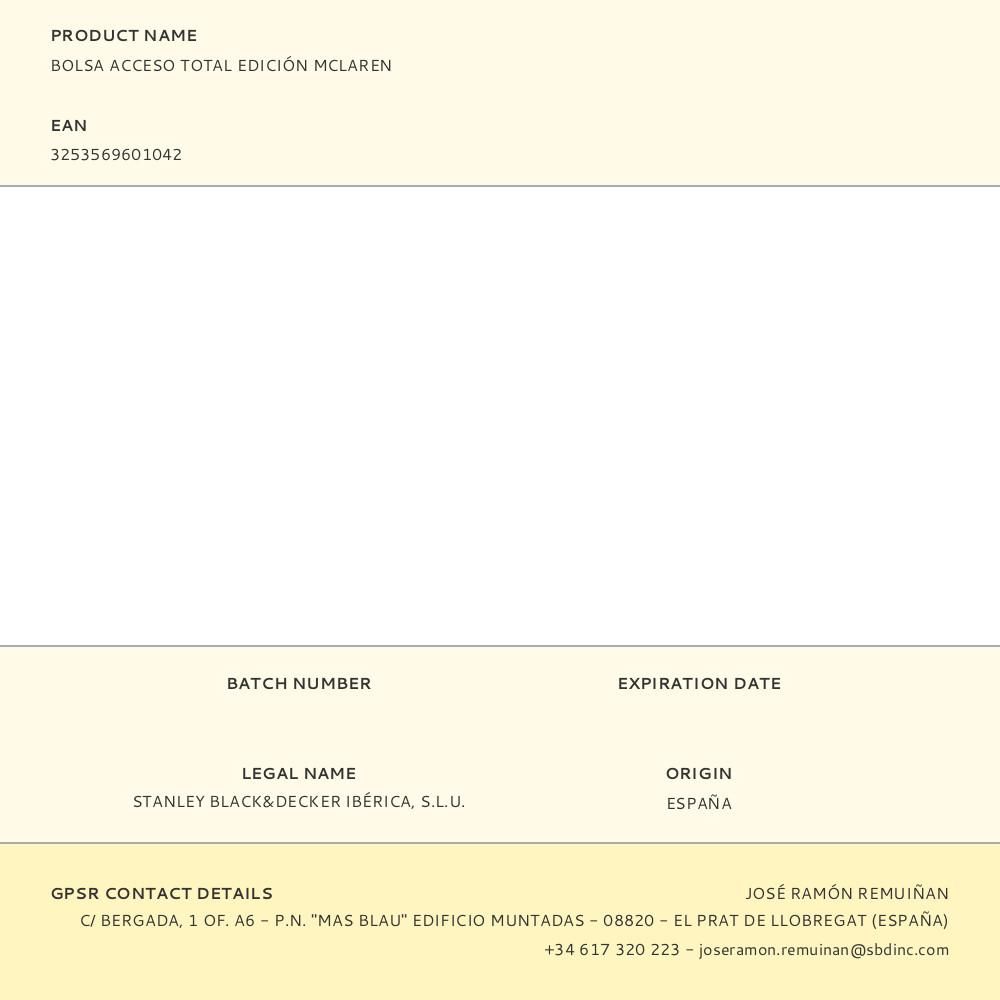 BOLSA PARA HERRAMIENTAS, ACCESO TOTAL (CON CREMALLERA EN LA PARTE SUPERIOR), EDICIÓN MCLAREN, FABRICADA EN POLIÉSTER 1680D, 33 BOLSILLOS (BOLSILLOS EXTERIORES PARA GUARDAR OBJETOS PERSONALES, HERRAMIENTAS PEQUEÑAS Y ACCESORIOS), CORREA AJUSTABLE, COMPARTIMENTO IP54 RESISTENTE AL AGUA, BASE PLÁSTICA RÍGIDA, CARGA MÁX. 25 kg, DIMENSIONES: 50,8 x 29 x 31 cm