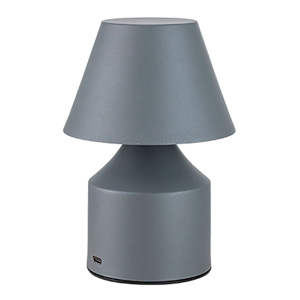 LÁMPARA TÁCTIL METÁLICA LED 3CCT (3000K-4000K-6000K) DE MESA RECARGABLE 2 W 200 lm 1200 mAh, IP20, GRIS, Ø110 x 163 mm, CAMBIA DE TONO E INTENSIDAD, TIEMPO DE CARGA 3 h, AUTONOMÍA 6-16 h, INCLUYE CABLE USB-C