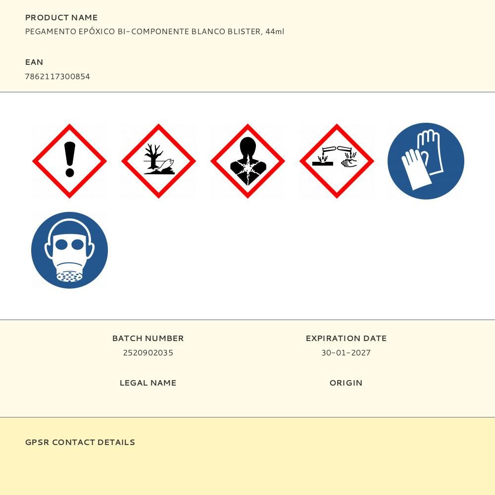 PEGAMENTO EPÓXICO BI-COMPONENTE BLANCO, 44 ml