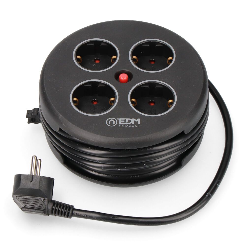 ENROLLACABLES CON 4 TOMAS 2P+T SCHUKO, CON PROTECCIÓN, 16 A 250 V, CABLE H05VV-F 3G1,5mm² DE 5 m, NEGRO