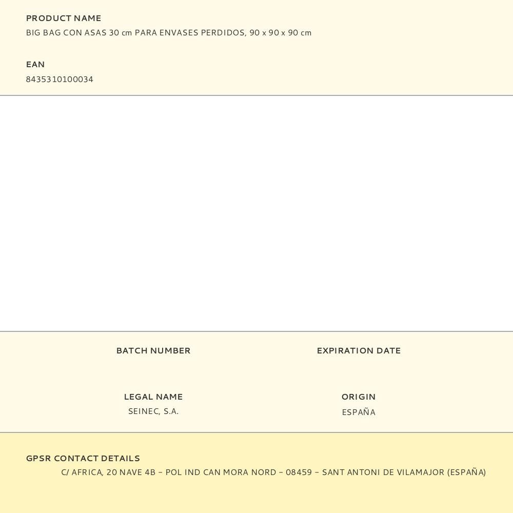 BIG BAG CON ASAS 30 cm PARA ENVASES PERDIDOS, 90 x 90 x 90 cm