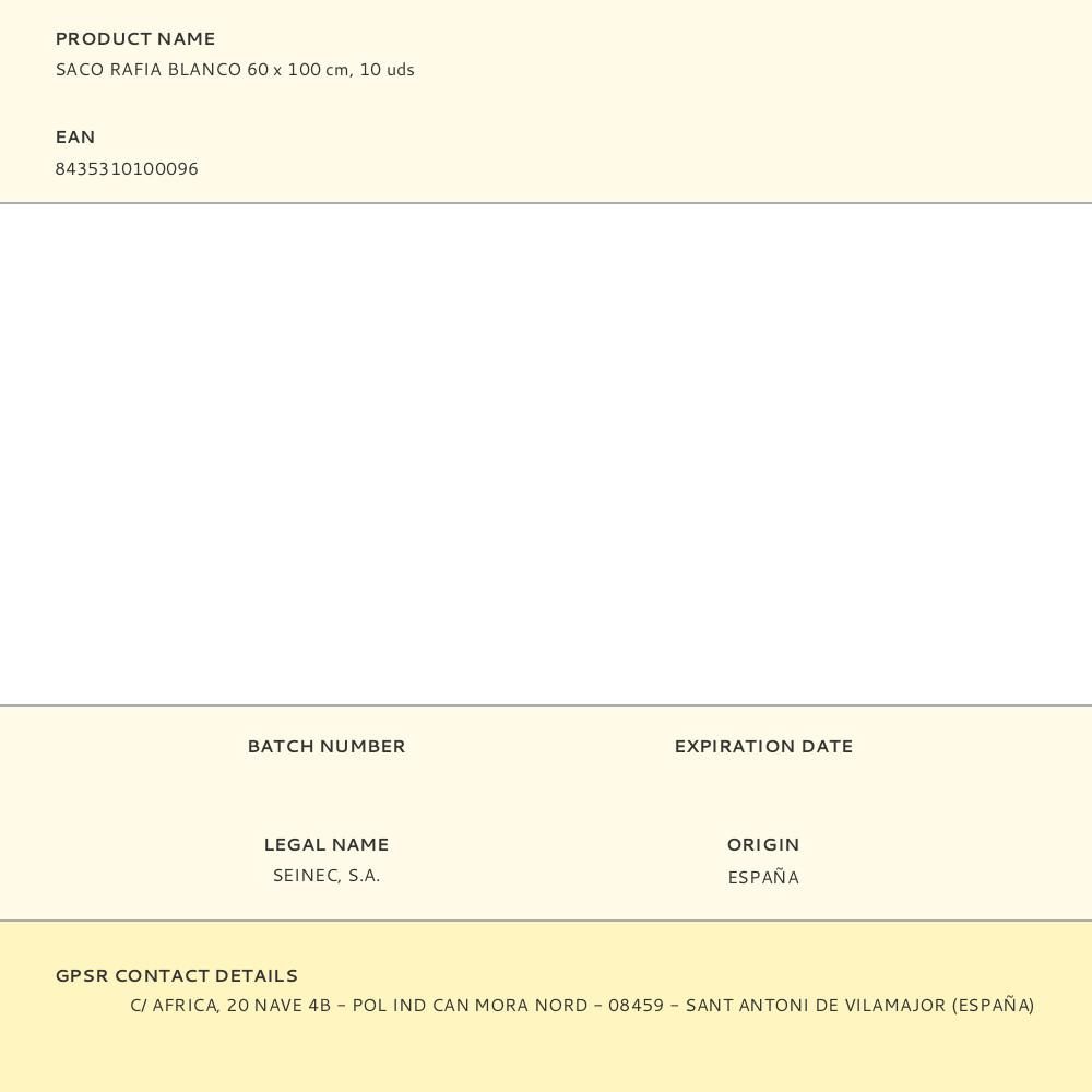 SACO DE RAFIA BLANCO 60 x 100 cm, 10 uds