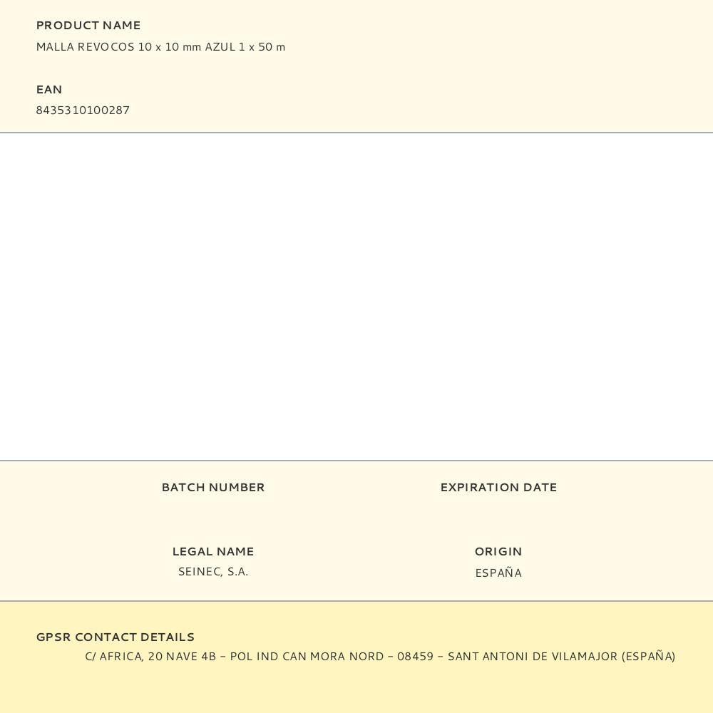 MALLA REVOCO MORTERO 10 x 10 mm AZUL 1 x 50 m
