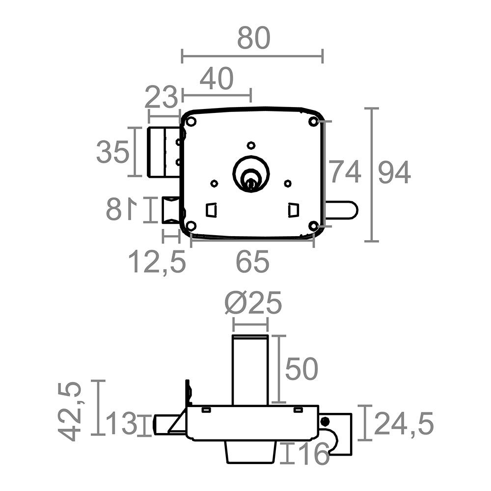 CERRADURA SOBREPONER CRS02 40 x 80 mm - PARA INSTALAR EN PUERTAS DE CARPINTERÍA DE MADERA, REFORZANDO LA SEGURIDAD EN LA ENTRADA DEL HOGAR U OTRAS ESTANCIAS COMO DESPACHOS, LOCALES COMERCIALES, ETC - EL CILINDRO QUE LLEVA ES DE FORMA REDONDA DE 5 PINES - ES DE MANO DERECHA - DESPLAZAMIENTO DE 20 mm (2 VUELTAS) - INCLUYE PALANCA DE CIERRE, LENGÜETA, TIRADOR Y 5 LLAVES TIPO SERRETA - LA LLAVE EN BRUTO PARA COPIAS ADICIONALES ES LA REFERENCIA 10791 - FABRICADA EN ACERO, ACABADO PINTADO EN ORO