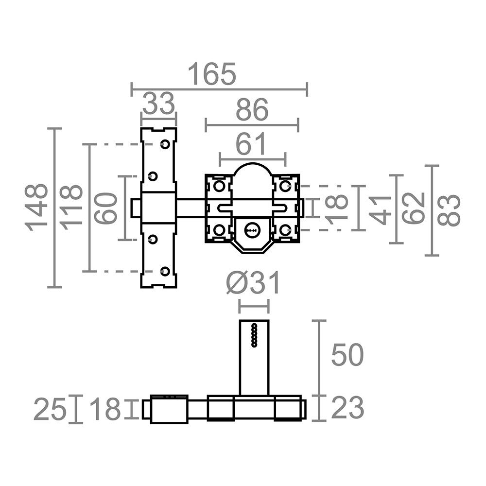 CERROJO DE SOBREPONER CRR11 CON PLACA DE 86 mm Y CILINDRO REDONDO DE 50 mm - PARA REFORZAR LA SEGURIDAD MEDIANTE LA INSTALACIÓN EN CUALQUIER TIPO DE PUERTA - ADEMÁS, AL SER REVERSIBLE NO GUARDA MANO - EL ACCIONAMIENTO INTERNO Y EXTERNO SE REALIZA MEDIANTE LLAVE DE SEGURIDAD A TRAVÉS DEL CILINDRO - CON 5 LLAVES DE SEGURIDAD - ADEMÁS, INCLUYE CADENILLA, PROTECTOR DE CILINDRO Y SISTEMA ANTIBUMPING - FABRICADO EN ACERO, ACABADO EN LATÓN SATINADO