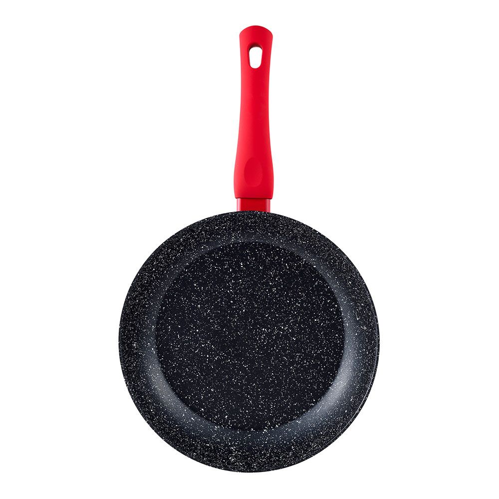 SARTÉN TOLEDO Ø26 cm PARA INDUCCIÓN, CUERPO FABRICADO EN ALUMINIO FORJADO, REVESTIMIENTO ANTIADHERENTE CON ACABADO MARMOLADO. MANGO RESISTENTE AL CALOR EN ROJO.