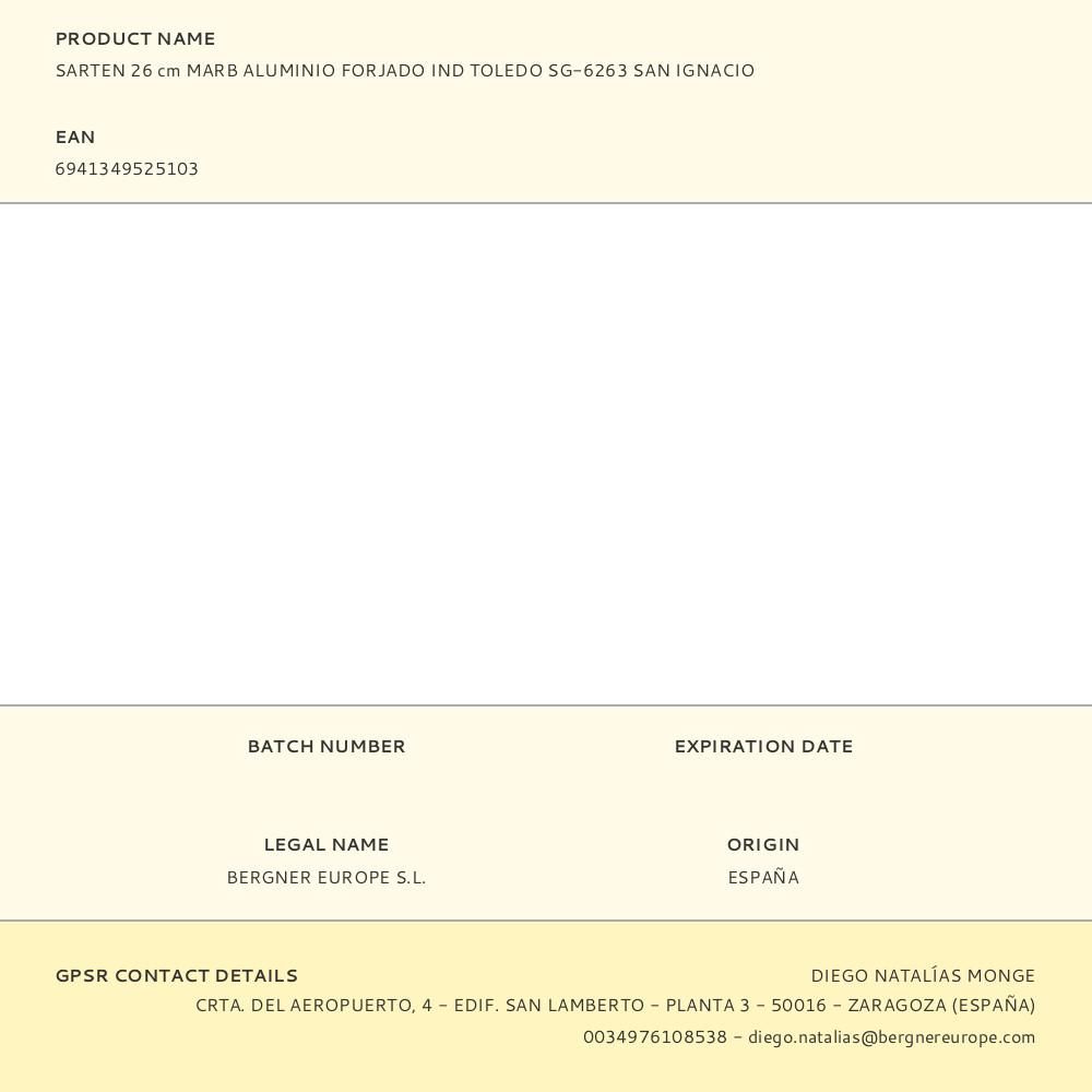 SARTÉN DE ALUMINIO FORJADO INDUCCIÓN TOLEDO Ø26 cm