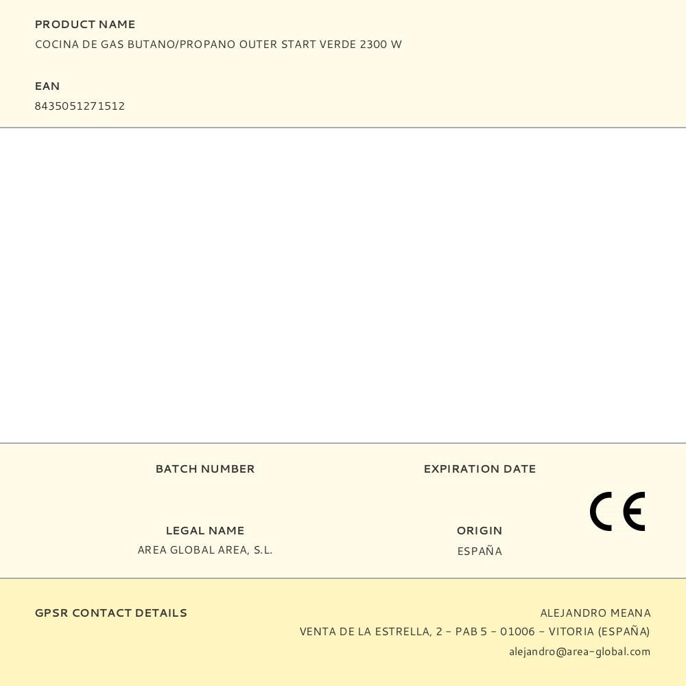 COCINA DE GAS BUTANO/PROPANO OUTER START VERDE 2300 W