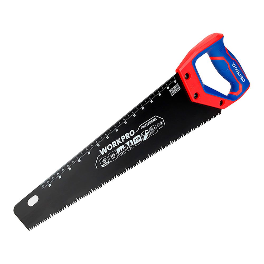 SERRUCHO UNIVERSAL SK5 TEFLÓN, 8 TPI, 400 mm - MANGO ERGONÓMICO CON BORDES DISEÑADOS PARA AYUDARTE A TRAZAR ÁNGULOS COMUNES SIN NECESIDAD DE OTRA HERRAMIENTA (90° Y 45°), CON MARCA DE ESCALA, HOJA DE SIERRA SK5 DURADERA - DIENTES DE TRIPLE AFILADO - DISEÑO DE DIENTES GRANDES Y PEQUEÑOS PARA UNA REMOCIÓN DE VIRUTAS MÁS RÁPIDA Y MAYOR EFICIENCIA - TRATAMIENTO SUPERFICIAL DE TEFLÓN PARA UN USO MÁS SUAVE - PARA EL CORTE RÁPIDO DE MADERA, BAMBÚ, PVC Y OTROS MATERIALES