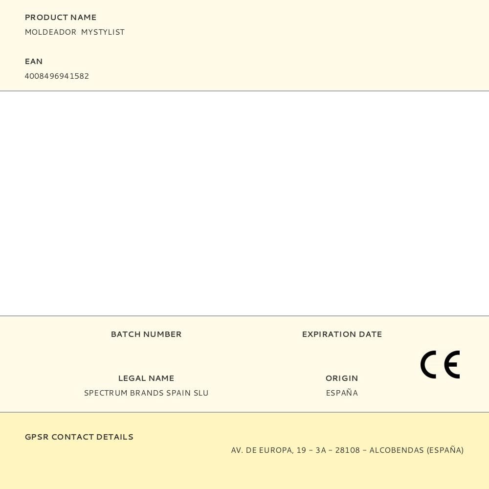 MOLDEADOR MYSTYLIST CON BARRIL DE Ø19 mm PARA RIZOS COMPACTOS Y DEFINIDOS. REVESTIMIENTO DE CERÁMICA PARA UNA DISTRIBUCIÓN UNIFORME DEL CALOR POR TODO EL BARRIL. LISTA PARA USAR EN 90 SEGUNDOS. AJUSTE DE TEMPERATURA 190 °C. INTERRUPTOR DE ENCENDIDO/APAGADO CON INDICADOR LED. PUNTA FRÍA DE SEGURIDAD. SOPORTE DE APOYO RESISTENTE AL CALOR. CABLE GIRATORIO DE 1,8 m. APAGADO AUTOMÁTICO DE SEGURIDAD DESPUÉS DE 60 MINUTOS