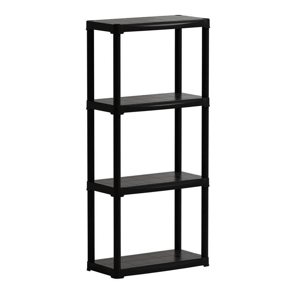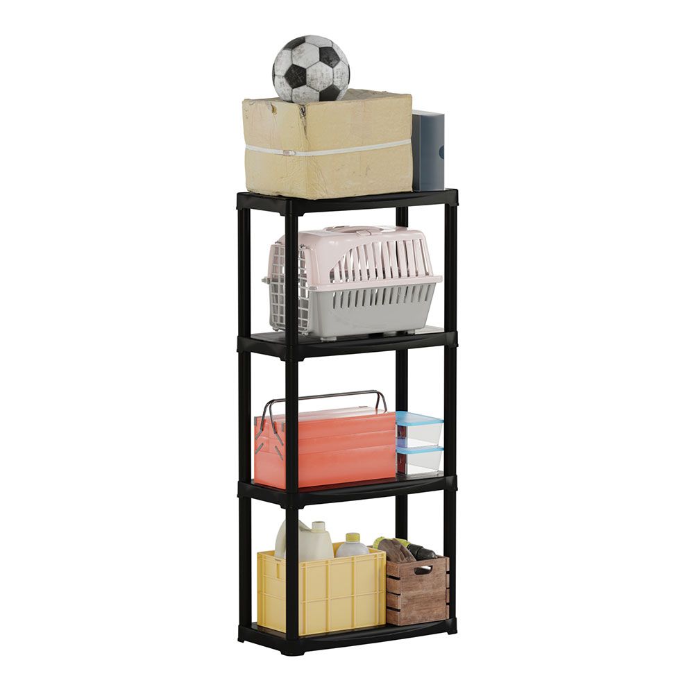 ESTANTERÍA POLIPROPILENO, 4 ESTANTES, CAPACIDAD DE CARGA DE 20 Kg POR ESTANTE, NEGRA, MATERIAL RECICLABLE - 60 x 30 x 133 cm