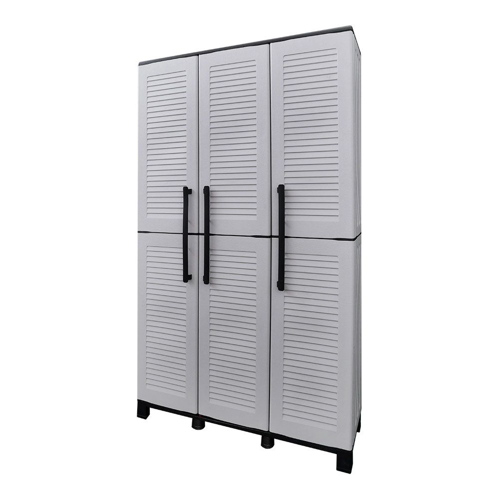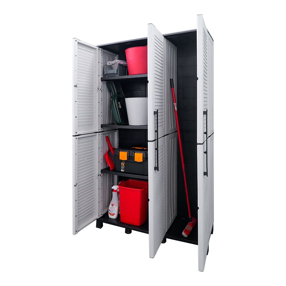 ARMARIO ALTO CON ESTANTES Y PORTAESCOBAS LÍNEA FAMILY DE POLIPROPILENO GRIS CLARO, 102 x 37 x 169 cm