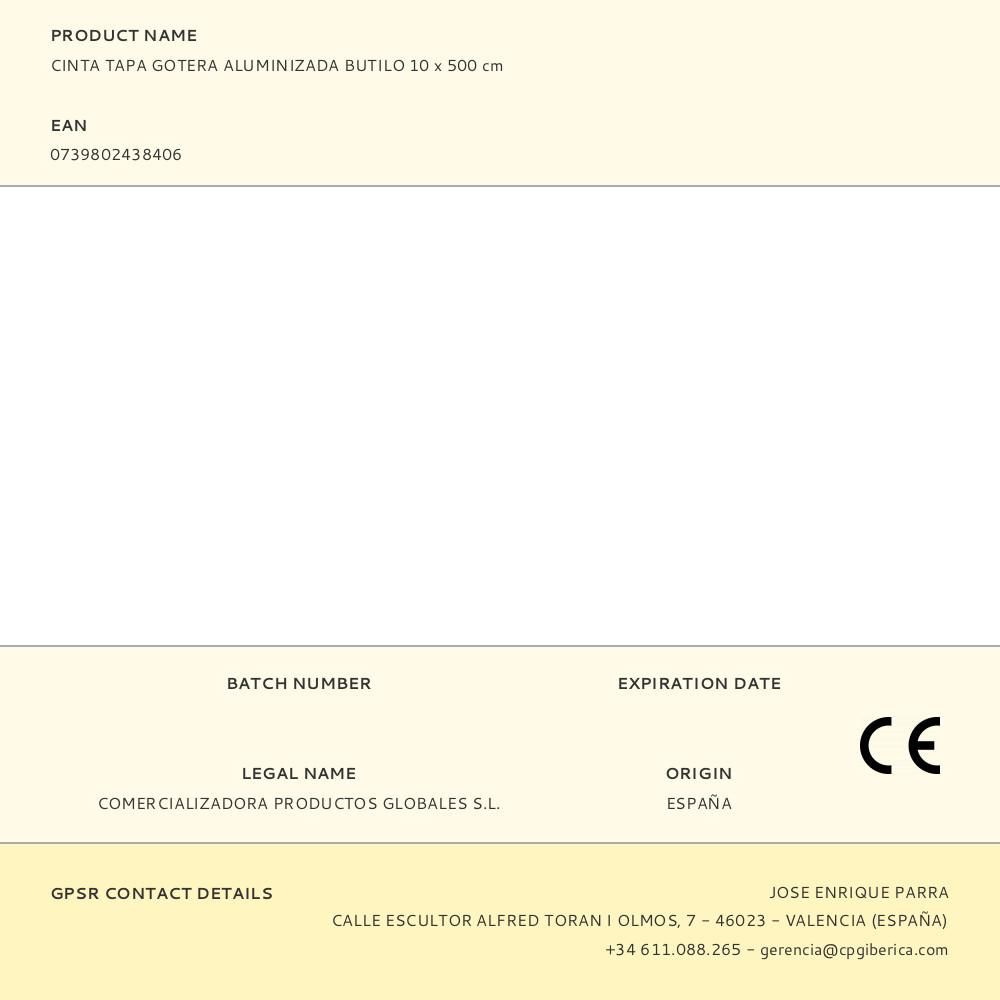 CINTA TAPA GOTERA ALUMINIZADA BUTILO 100 mm x 5 m