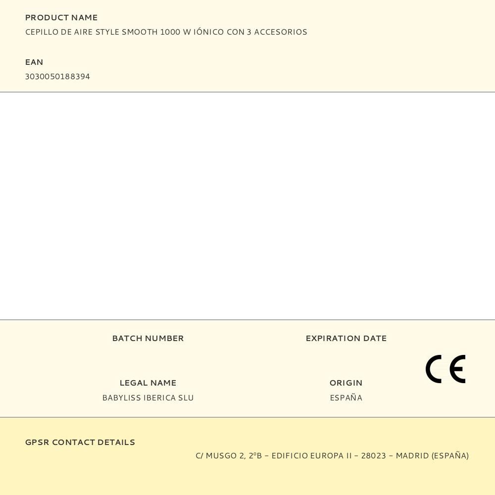 CEPILLO DE AIRE STYLE SMOOTH HA SIDO DISEÑADO PARA SECAR, ALISAR Y DAR VOLUMEN EN TODO TIPO DE CABELLOS, PROPORCIONANDO UN ACABADO PROFESIONAL DESDE CASA. 1000 W. INCLUYE TRES ACCESORIOS VERSÁTILES: CEPILLO VOLUMINIZADOR OVALADO, CEPILLO ALISADOR Y BOQUILLA DE SECADO, IDEALES PARA CREAR PEINADOS CON VOLUMEN, MOVIMIENTO O UN ACABADO LISO Y NATURAL. CON TECNOLOGÍA IÓNICA QUE NEUTRALIZA LA ELECTRICIDAD ESTÁTICA PARA UN CABELLO MÁS SUAVE Y SIN ENCRESPAMIENTO. DISPONE DE 2 AJUSTES DE TEMPERATURA Y VELOCIDAD, MÁS UN BOTÓN DE AIRE FRÍO PARA FIJAR EL PEINADO. CABLE DE 2,2 m - INCLUYE BOLSA DE ALMACENAMIENTO