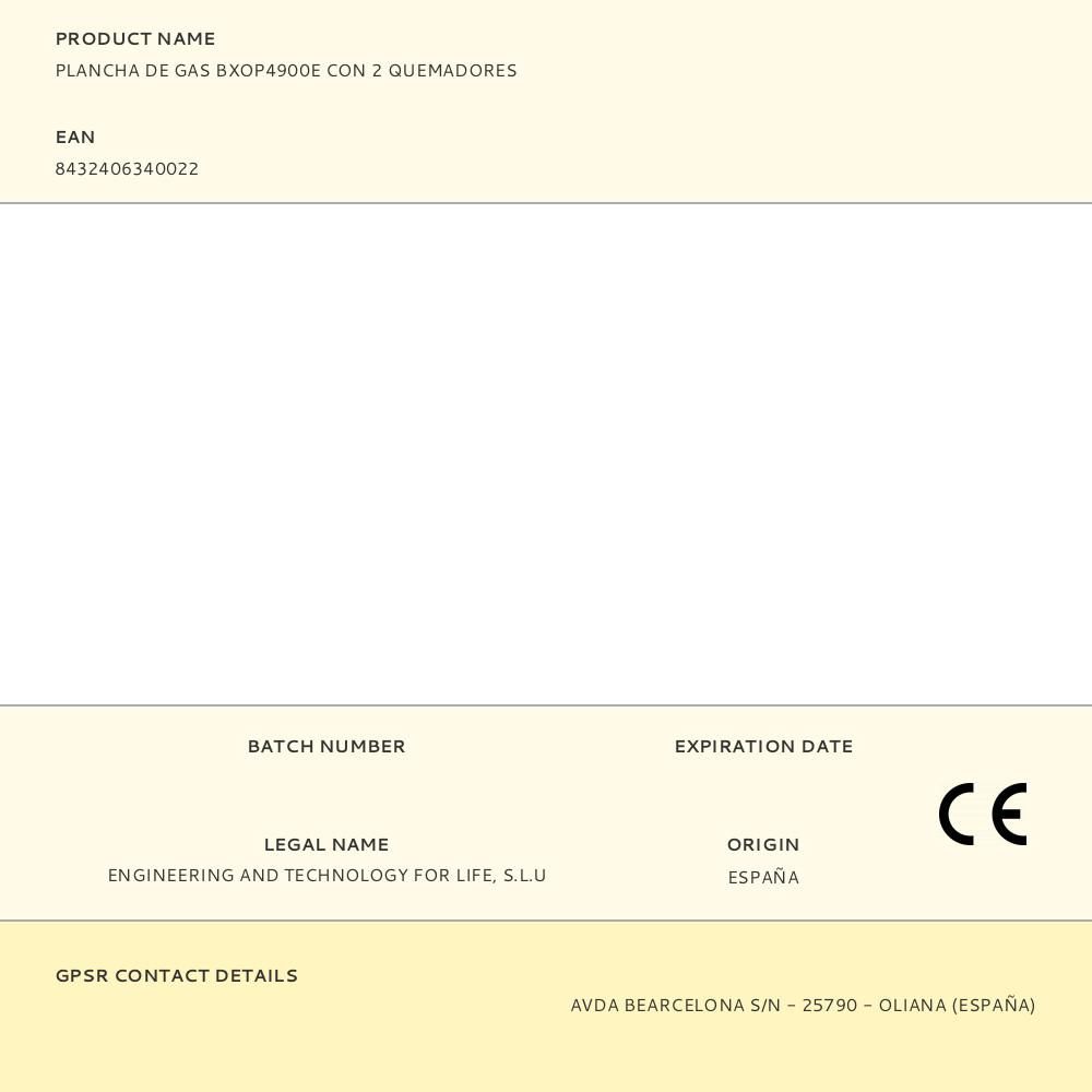 PLANCHA DE GAS BXOP4900E CON 2 QUEMADORES