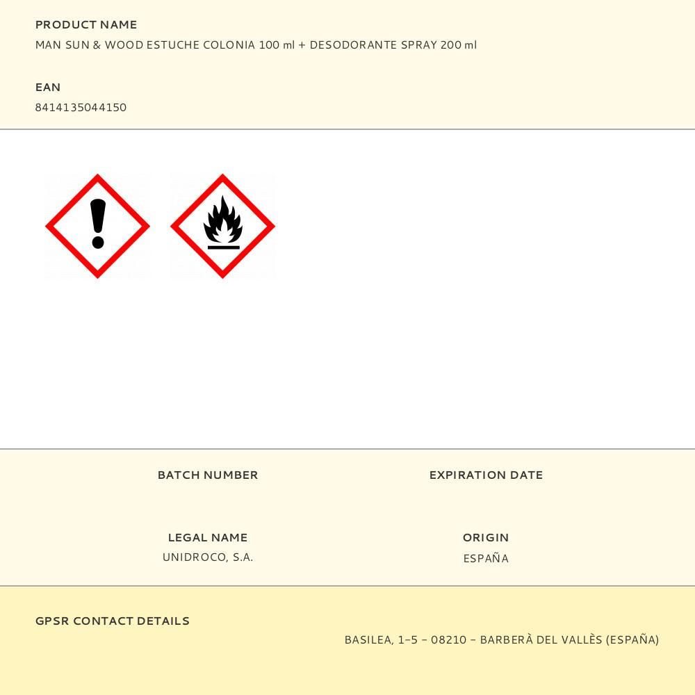MAN SUN & WOOD ESTUCHE COLONIA 100 ml + DESODORANTE SPRAY 200 ml