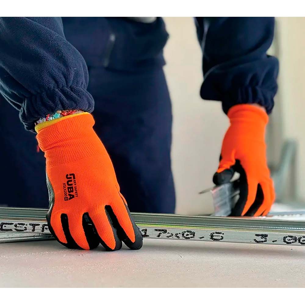 GUANTE POLIÉSTER CON PALMA LÁTEX RUGOSO, KEEP SAFE, NARANJA Y NEGRO, T-10 XL
