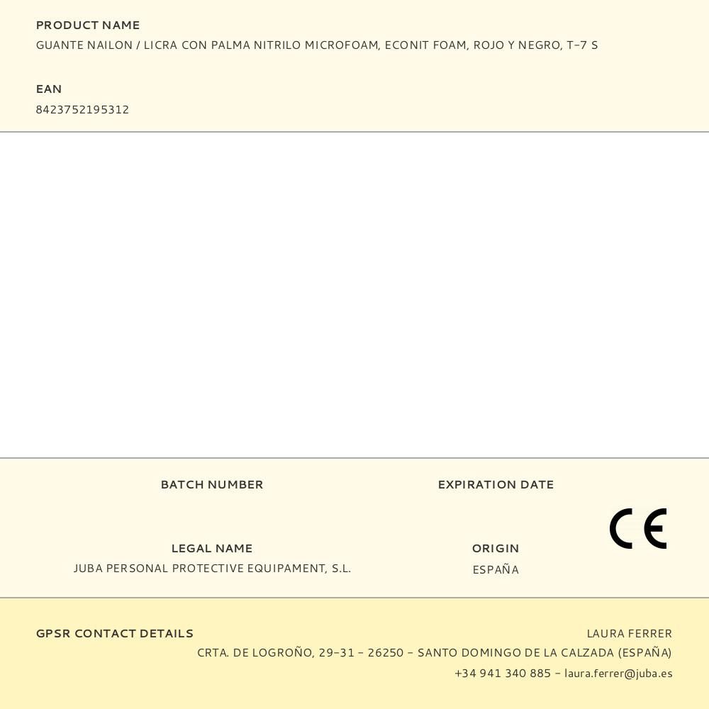 GUANTE NAILON / LICRA CON PALMA NITRILO MICROFOAM, ECONIT FOAM, ROJO Y NEGRO, T-7 S