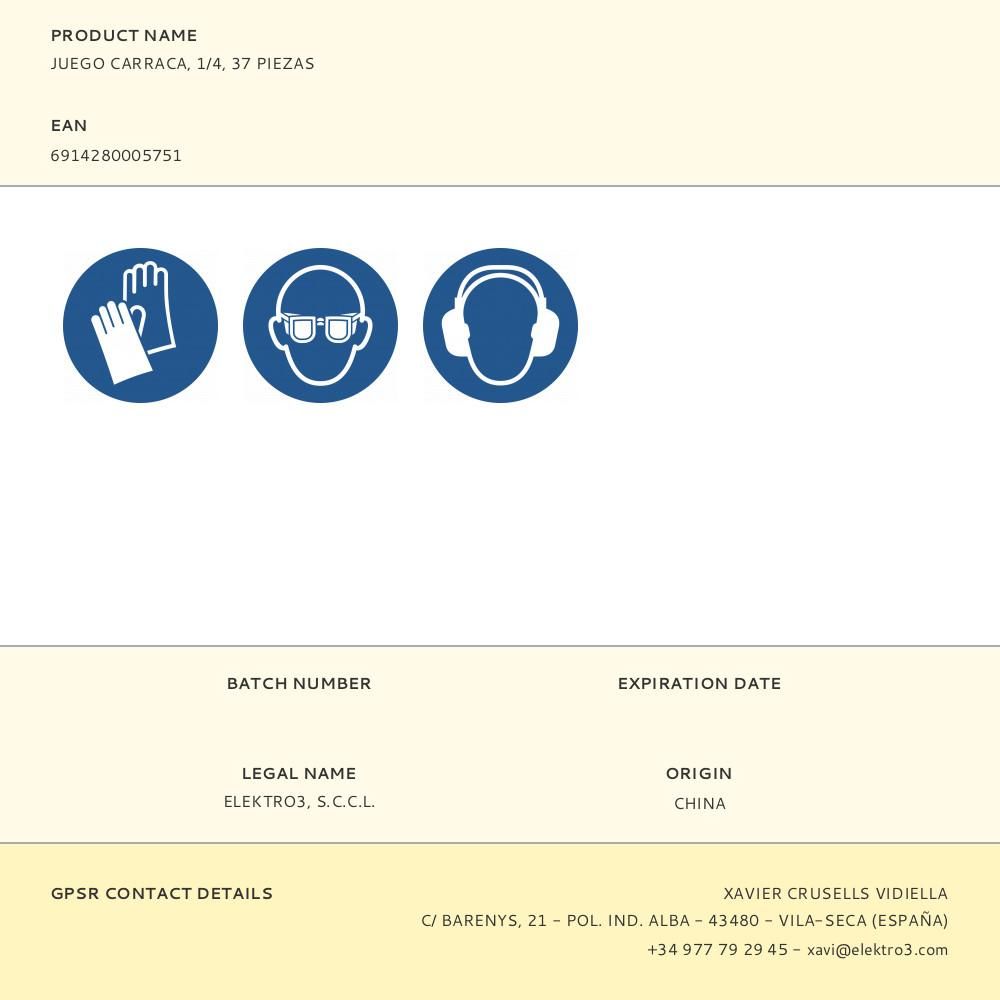 JUEGO CARRACA ¼ pulg, 37 PIEZAS - 1 CARRACA CAMBIO RÁPIDO 72 DIENTES - 1 ALARGADOR, 1 BARRA EXTENSIÓN 75 mm, 1 CARDÁN, 1 MANGO GIRATORIO, 12 VASOS 4, 5, 5.5, 6, 7, 8, 9, 10, 11, 12, 13, 14 mm - 20 PUNTAS DESTORNILLADOR