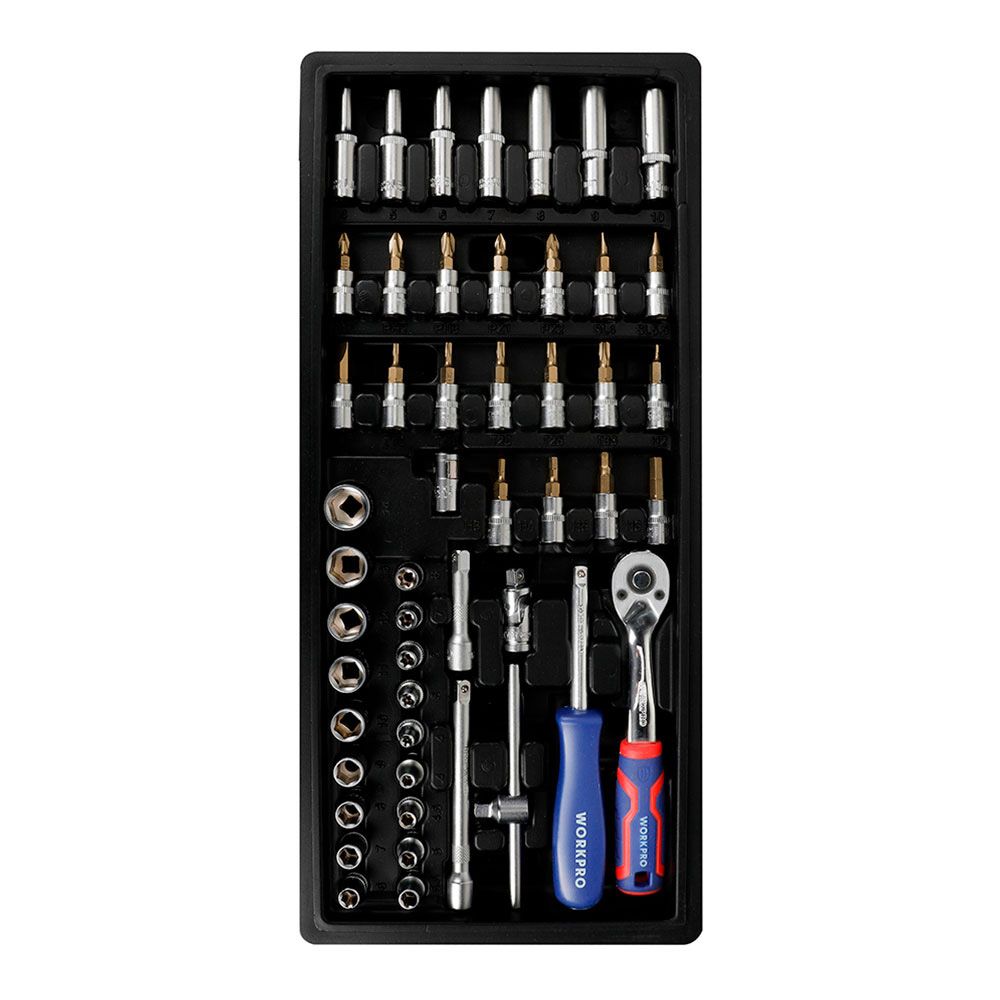 JUEGO CARRACA ¼ pulg, VASOS Y PUNTAS, JUEGO 50 PIEZAS - CONTIENE 1 LLAVE DE CARRACA DE ¼ pulg 72 DIENTES - 13 VASOS HEXAGONALES 4, 4.5, 5, 5.5, 6, 7, 8, 9, 10, 11, 12, 13 Y 14mm - 5 VASOS TORX EXTERNO 4, 5, 7 Y 8mm - 18 VASOS CON PUNTA: HEXAGONALES H2, H3, H4, H5, H6 - TORX T10, T15, T20, T25, T30 - PLANA SL4, SL5.5, SL7 - PHILLIPS PH1, PH2, PH3 - POZI PZ1, PZ2 - 7 VASOS LARGOS HEXAGONALES 4, 5, 6, 7, 8, 9 Y 10mm - 2 BARRAS DE EXTENSIÓN 50 Y 100 mm - 1 MANGO DESTORNILLADOR GIRATORIO 150 mm - 1 ARTICULACIÓN UNIVERSAL - 1 BARRA EN T DESLIZANTE - 1 ADAPTADOR DE PUNTAS