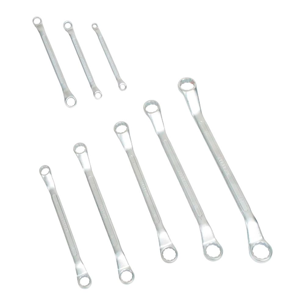 LLAVES DE ESTRELLA DE ACERO CROMO-VANADIO ACODADAS DOBLES, JUEGO 8 PIEZAS - TAMAÑOS: 6 x 7, 8 x 9, 10 x 11, 12 x 13, 14 x 15, 16 x 17, 18 x 19, 20 x 22 mm