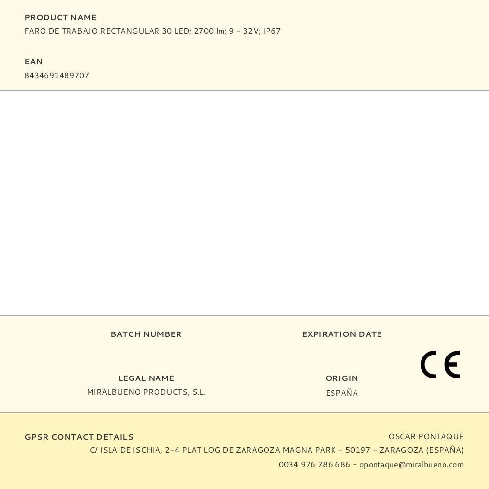FARO DE TRABAJO CUADRADO 30 LEDS - 2700 lm - 9 - 32 V - IP67