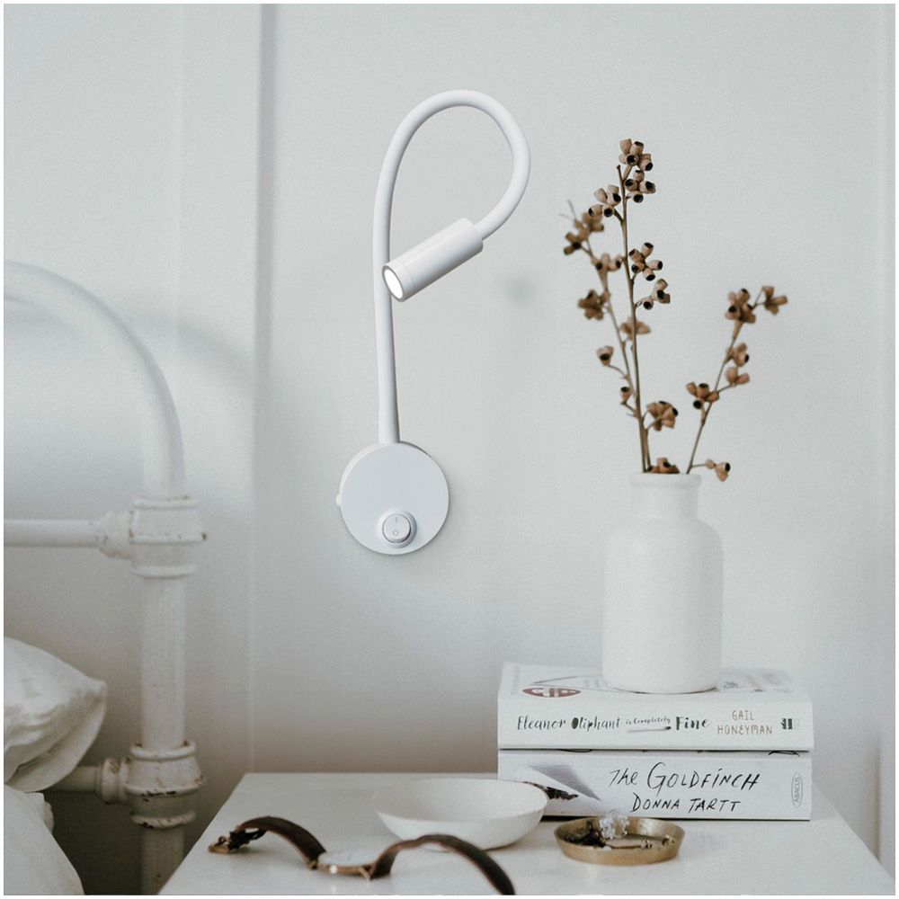 APLIQUE LED CLASSIC, 3 W, 4000 K, 450 lm - MATERIAL ALUMINIO - IP20 - CLASE PROTECCIÓN II - CLASE ENERGÉTICA G - 220-230 V~50 Hz - FLEXIBLE, FOCALIZADO. PARA LUZ AUXILIAR/LECTURA JUNTO AL CABECERO DE LA CAMA, COLOR BLANCO, 35 x 6,3 cm
