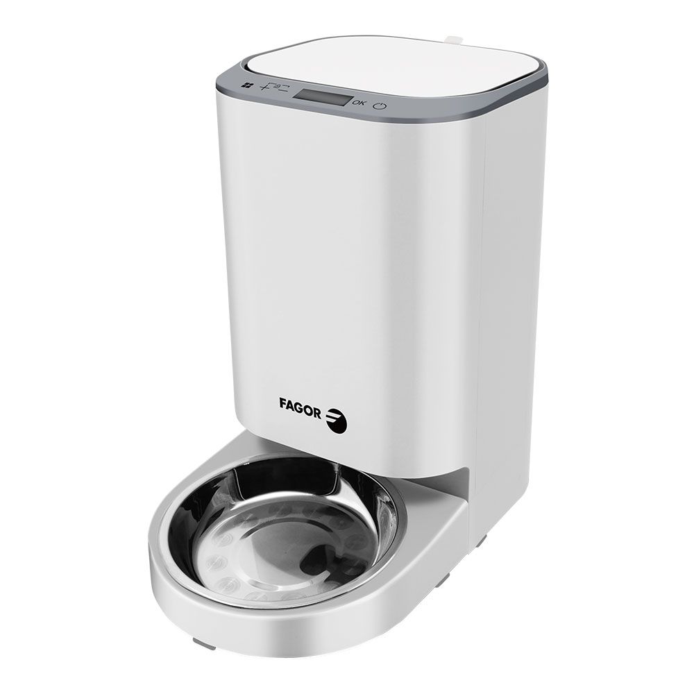 COMEDERO AUTOMÁTICO PARA MASCOTAS. EL DISPENSADOR PUEDE DISTRIBUIR COMIDA A INTERVALOS REGULARES Y EN CANTIDADES FIJAS - LA BANDEJA DE ALIMENTACIÓN ESTÁ DISEÑADA PARA ACOMODAR UN MÁXIMO DE 10-12 PORCIONES DE COMIDA. CADA PORCIÓN ES DE APROXIMADAMENTE 15 GRAMOS. FÁCIL CONFIGURACIÓN. SE PUEDE DESMONTAR PARA UNA FÁCIL LIMPIEZA. BOL DE ACERO INOXIDABLE EXTRAÍBLE. EN CASO DE UN CORTE DE ENERGÍA, EL ALIMENTADOR PASARÁ AUTOMÁTICAMENTE A FUNCIONAR CON BATERÍAS. CAPACIDAD DEL RECIPIENTE: 4 l / 2 kg, POTENCIA: 3 W