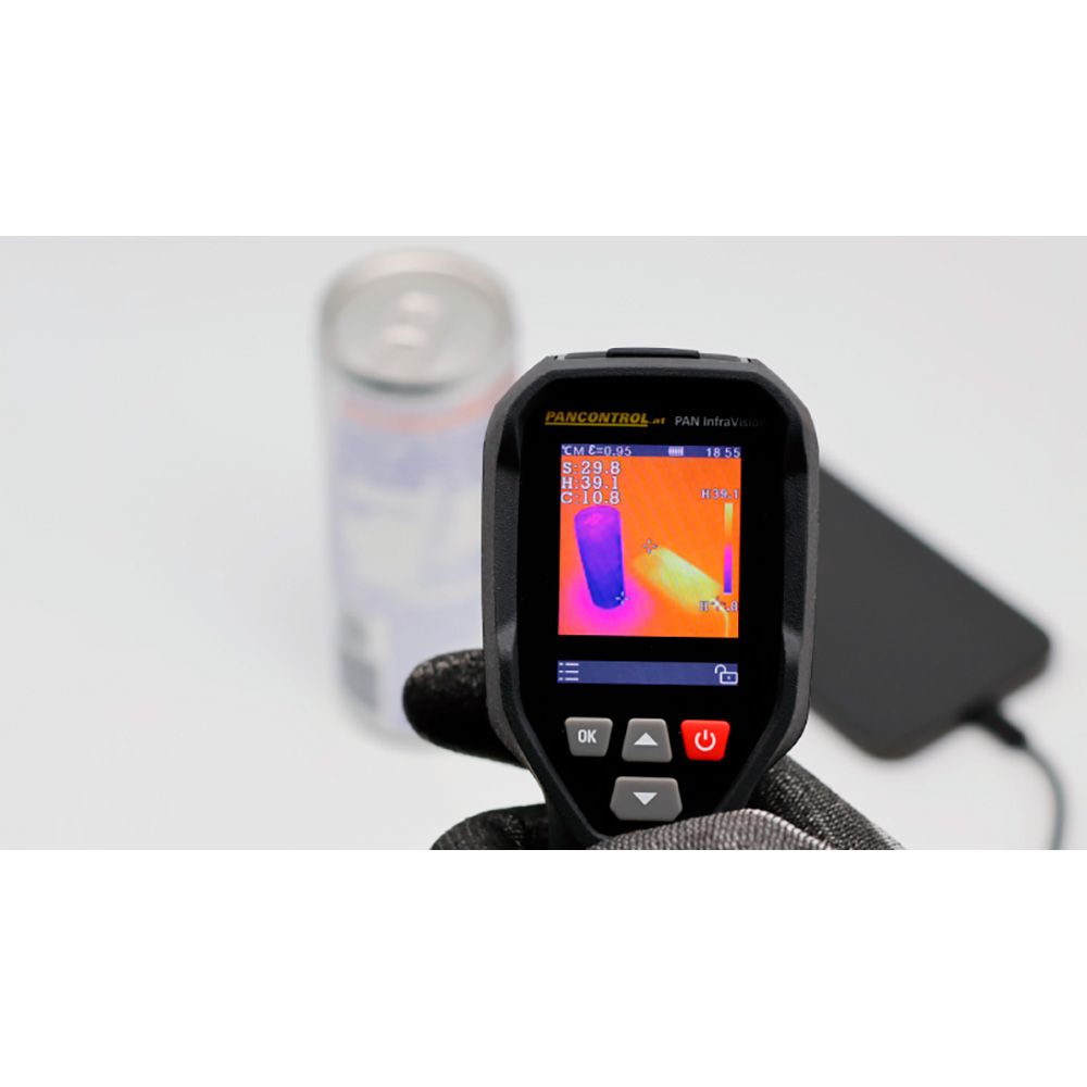 CÁMARA TERMÓMETRO INFRARROJA 12:1 - RESOLUCIÓN: SENSOR 96 x 96 px, PANTALLA DE 240 x 320 px Y DE 2 pulg - IP54, MEMORIA DE VALORES MÍNIMOS/MÁXIMOS, MEMORIA DE 3,5 GB, BATERÍA Li-Ion 3,7 V 2600 mAh, RECARGABLE CON CABLE USB-C INCLUIDO - LÍMITES -20 Y 550°C, PRECISIÓN ±2°C ±2%, APLICACIÓN ANDROID & iOS - APAGADO AUTOMÁTICO, PANTALLA A COLOR, INCLUYE ESTUCHE DE ALMACENAJE, DIMENSIONES 5,5 x 8 x 18 cm
