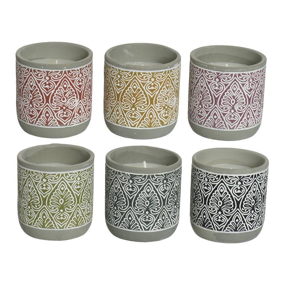 VELA CITRONELA EN VASO DE TERRACOTA, COLORES SURTIDOS, Ø9 x 9 cm. PRESENTADO EN EXPOSITOR DE 24 uds