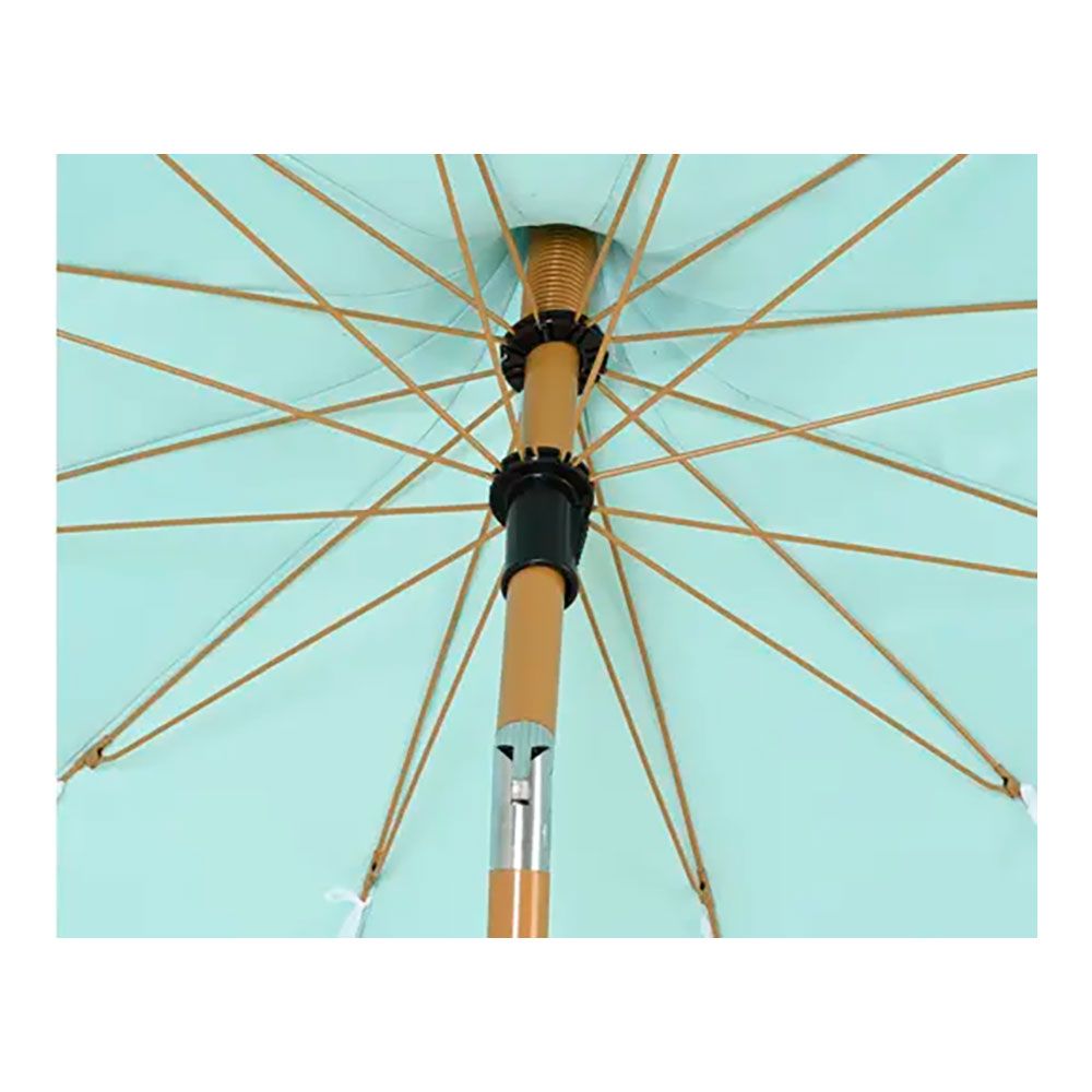 PARASOL Ø195 x 215 cm, COLOR VERDE AGUA CON RIBETE CORAL, AJUSTABLE Y PLEGABLE, TEJIDO DE POLIÉSTER Y NAILON CON PROTECCIÓN UV 30+, RESISTENTE AL CALOR UV 400, REPELENTE AL AGUA. MÁSTIL DE ACERO DE Ø28 - 32 mm. ALTURA REGULABLE HASTA 215 cm, INCLUYE BOLSA DE ALMACENAJE