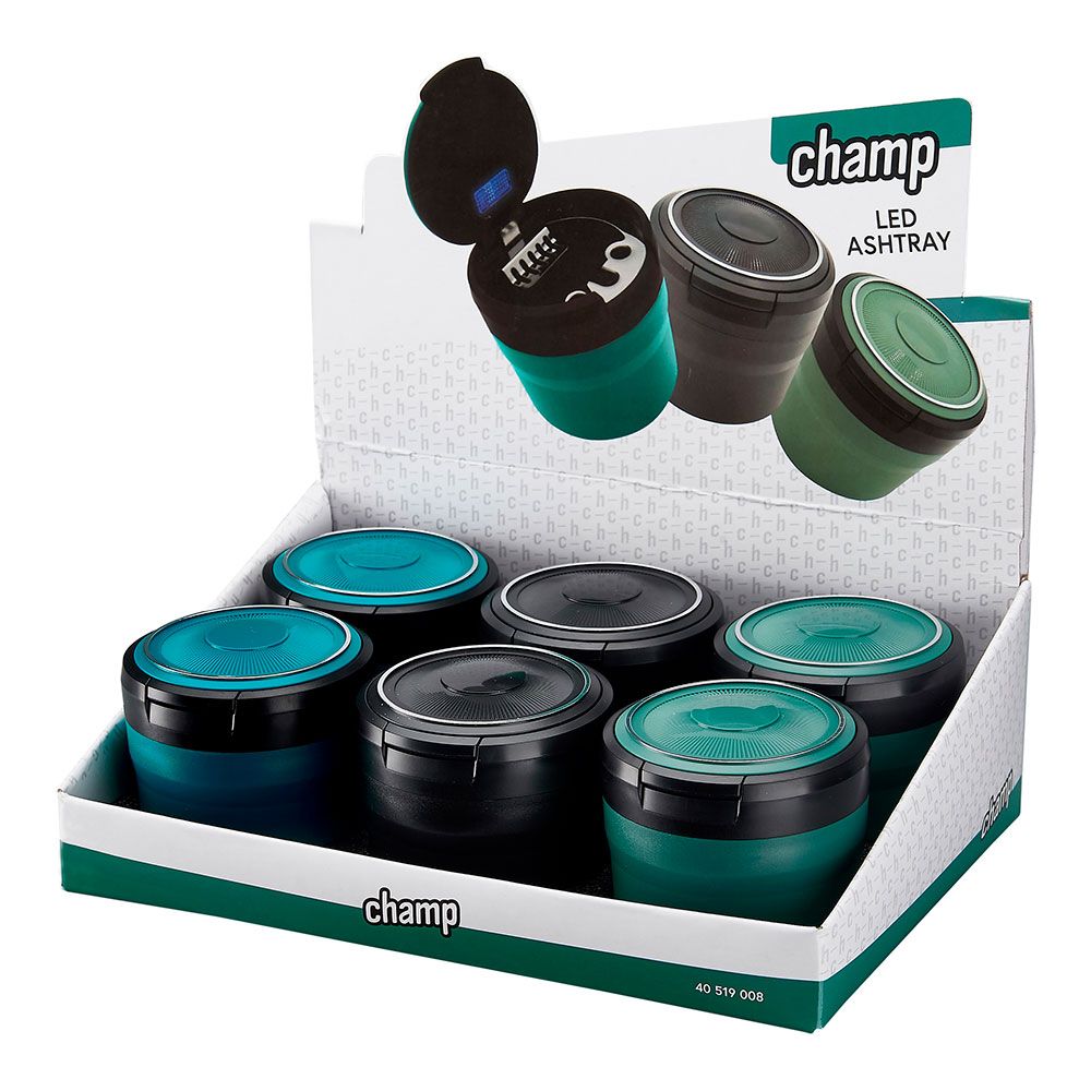 CENICERO REDONDO CON LED, DIMENSIONES: Ø8 x 7 cm - COLORES SURTIDOS - PRESENTADO EN EXPOSITOR DE 6 uds