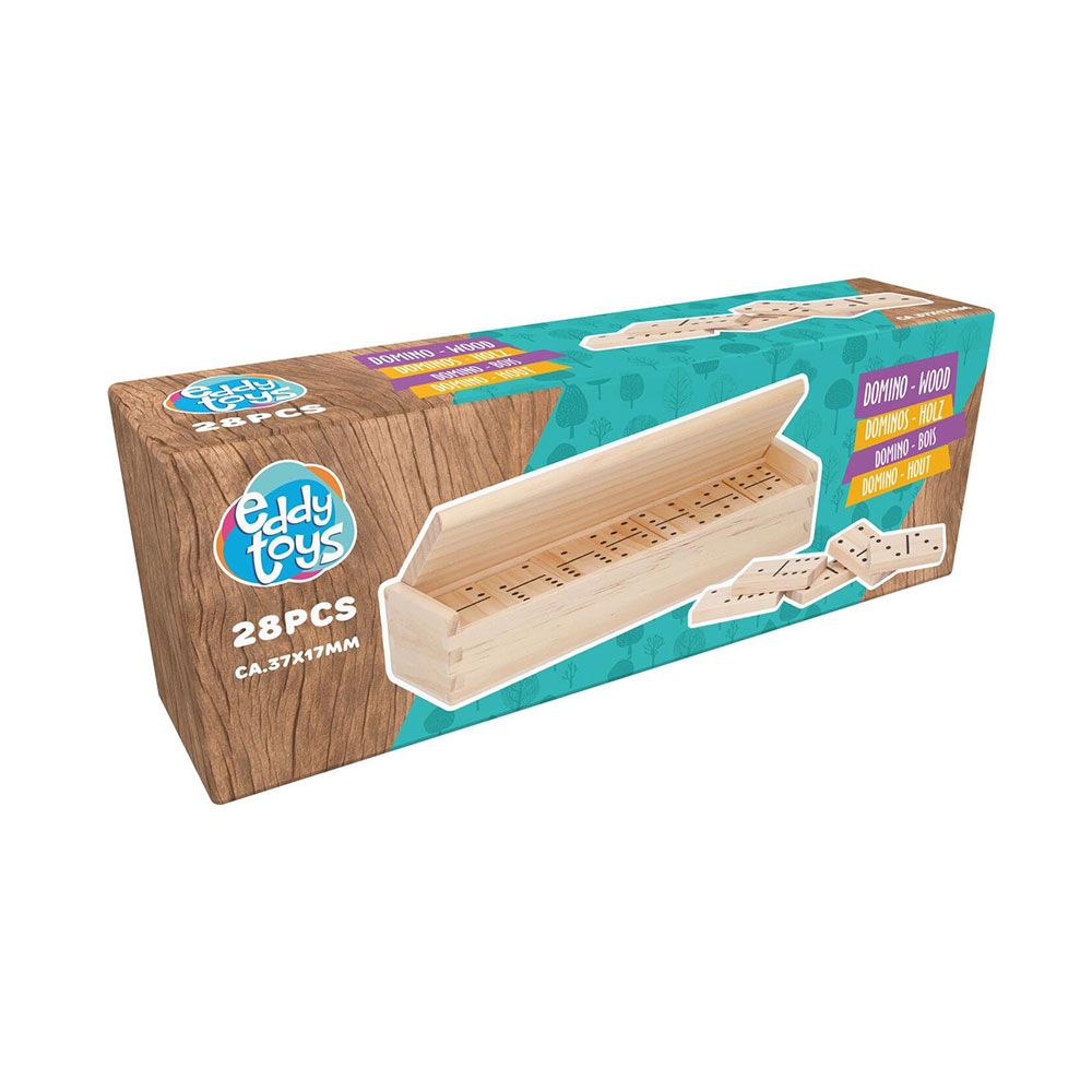 JUEGO DE DOMINÓ MADERA CON CAJA, 28 PIEZAS - FICHAS ROBUSTAS Y DURADERAS, DIVERTIDO PARA TODAS LAS EDADES - 19,5 x 6,5 x 4,3 cm
