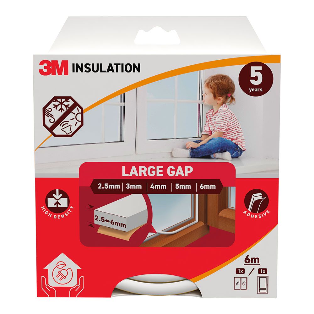 BURLETE DE AISLAMIENTO CLÁSICO PARA HUECOS GRANDES DE 2,5 - 6 mm, BURLETE DE ESPUMA DE ALTA DENSIDAD DISEÑADO PARA TODO TIPO DE VENTANAS Y PUERTAS - FÁCIL DE INSTALAR Y PARA QUE DUREN AÑOS, GARANTIZANDO UN MEJOR AISLAMIENTO - BLANCO - 6 m